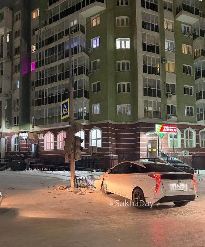 ДТП на Халтурина, снес светофор и забор. #дляsakhaday